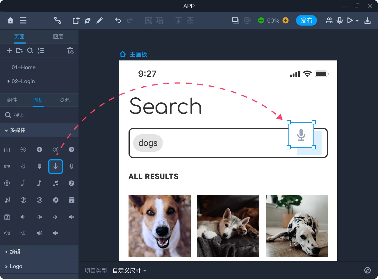 拖拽添加原型交互动画