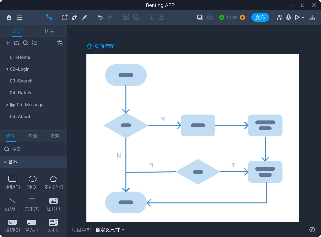 设计稿中直接支持绘制流程图,清晰呈现App功能架构及项目逻辑