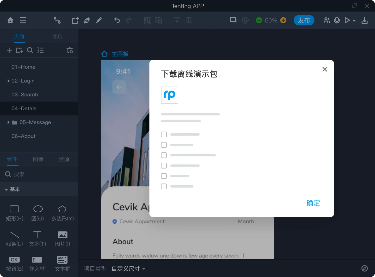 支持快速生成演示链接、下载离线演示包,一键分享给同事和客户,随时随地查看项目