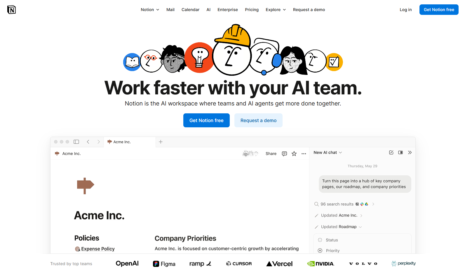 Notion 是一款全球流行的全能型工作空间工具,集文档、任务管理、知识库和数据库于一体。它最大的特点是灵活性:用户可以自由组合模块,构建适合自己的工作流。对于产品经理来说,Notion不仅能记录需求文档,还能搭建项目管理看板、设计组件库或团队知识库。