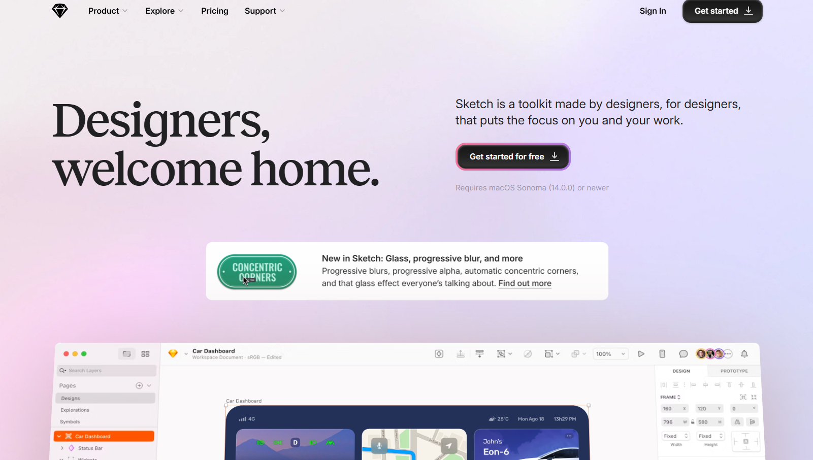 Sketch是Mac平台经典的界面设计工具,以轻量和高保真设计著称。它的组件化和符号功能能够大幅提高设计一致性和复用率,在视觉和UI设计环节表现优异,也可以完成原型设计。对独立设计师或喜欢使用Mac的用户来说,Sketch依然是很好的选择。