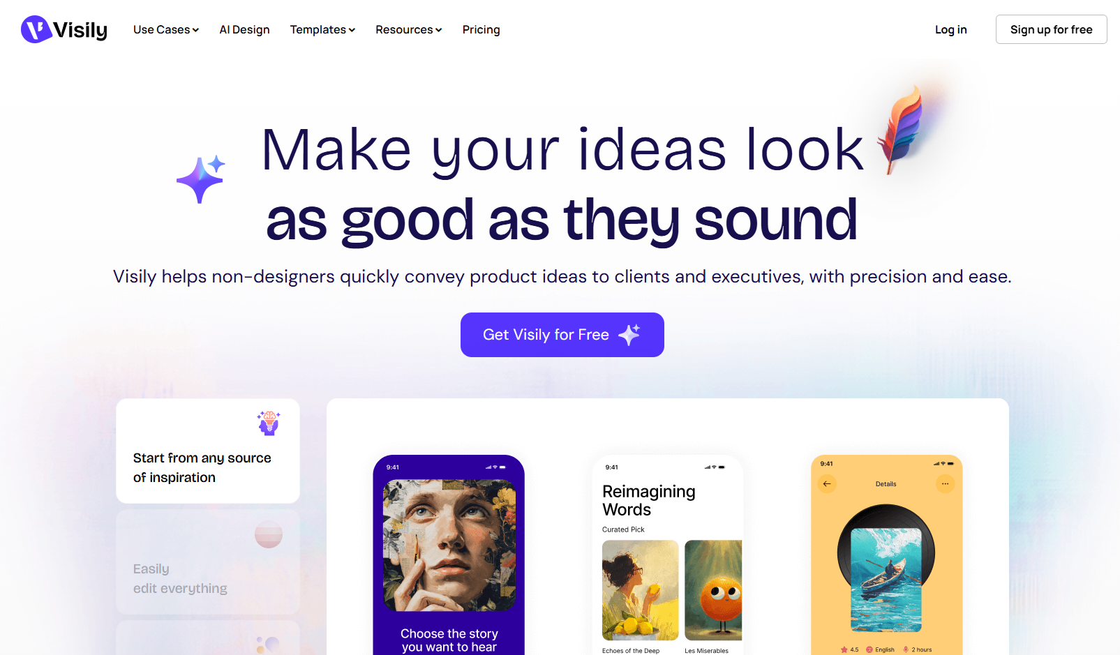 Visily AI强调设计优化与智能辅助,它同样支持基于文本生成原型,同时还可以调整布局、优化排版、提供配色建议等,使生成的界面更加符合设计规范。值得一提是,Visily AI内置了丰富的模板和示例,能够帮助非设计背景的用户快速上手,降低原型设计门槛。在应用场景上,它不仅适用于快速构建原型,还能作为设计规范的辅助工具,帮助团队在早期阶段建立一致的界面风格。