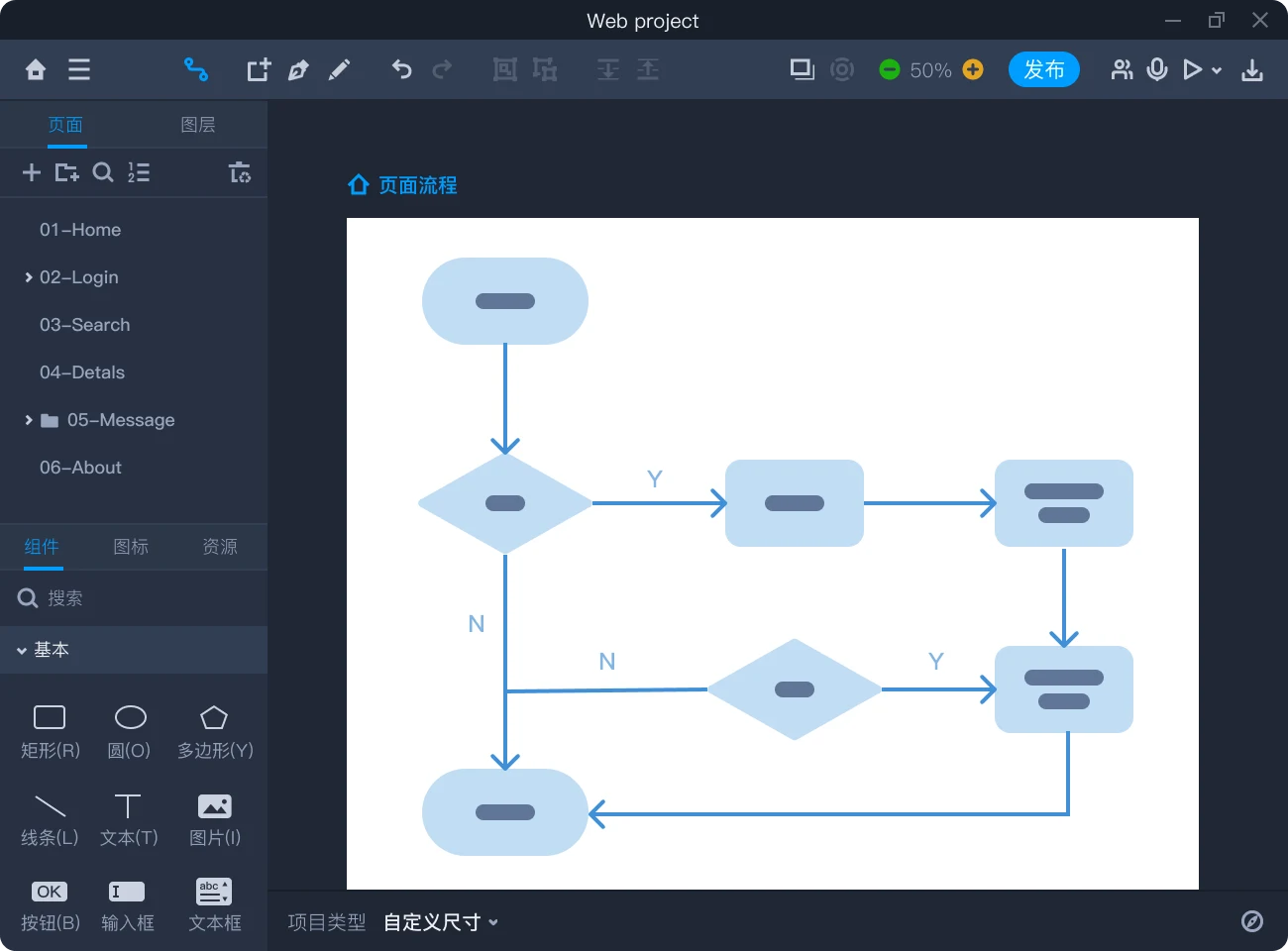设计稿中支持直接绘制流程图,清晰呈现网站架构和项目逻辑